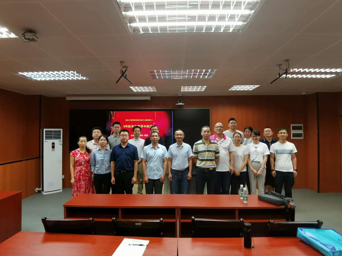 为营造浓郁的科研氛围,提升教师的科研能力,6月14日下午,信息工程学院在人文艺术楼1412录播室举办科创活动月系列讲座之一“VR/AR/MR技术在教学中的应用”。讲座特邀广州工程职业技术学院信息工程系主任、广东省VR虚拟现实教育技术创新联盟专家委员会主任王世安教授作为主讲人,信息工程学院院长曹春华、副院长汤锋、范新刚以及全体教师参与了此次活动。