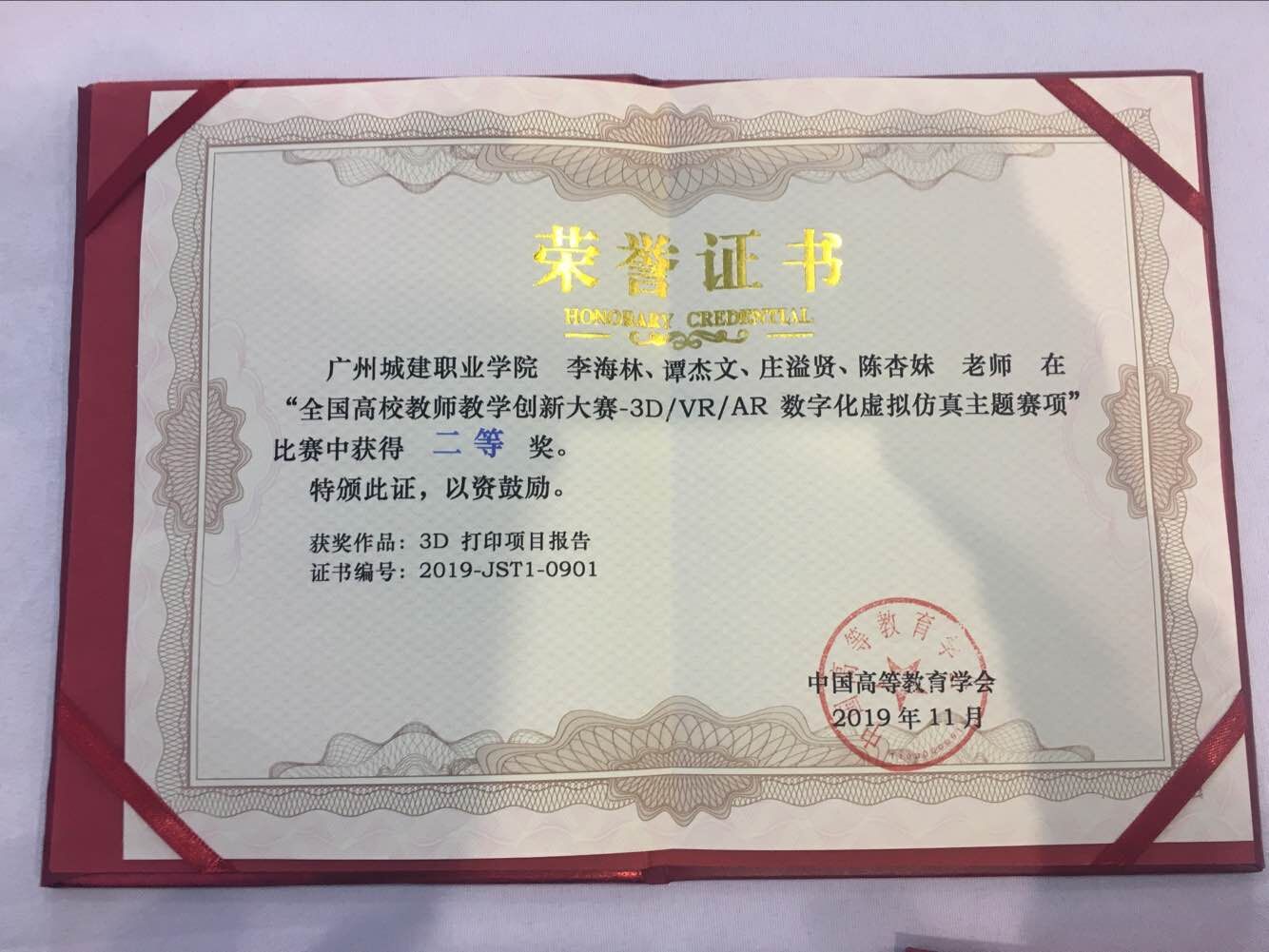 11月3日,由中国高等教育学会主办的“全国高校教师教学创新大赛3D/VR/AR数字化虚拟仿真主题赛项总决赛”在南京国际博览中心举行,我校机电工程学院李海林、庄溢贤、谭杰文、陈杏妹等4位老师与华南理工大学等来自全国26个省、130所院校的近160支团队同台竞技,经过现场操作、项目答辩等环节,最终获得二等奖,是广东省高职院校代表队中唯一获得二等奖的团队。