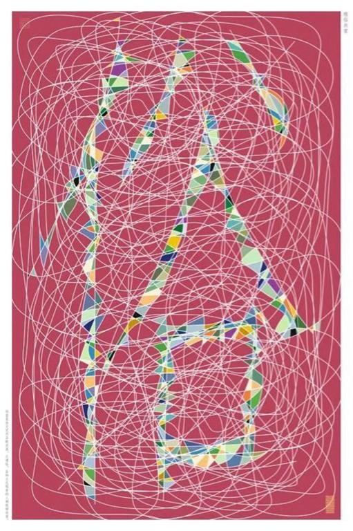 谈及自己的设计,谢老师说,竖线具有端庄、雅致的视觉特性;曲线具有自由、个性和丰富的特征,也是民俗的特征。再结合必须具有汉字的命题要求,用竖线构成“雅”字,并在色调上使用单一的浅色让作品看起来更加淡雅,用曲线构成“俗”字,在色调上使用重色调并运用了丰富的颜色使其更加突出和活跃,最终考虑到系列性及文化交流的礼仪性,两幅作品在最终的视觉上都比较规矩,目的就是为了让作品“富有内涵而不失礼仪”。