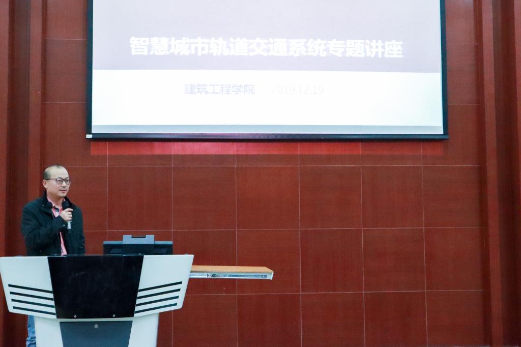 12月19日15:00,建筑工程学院市政工程教研室在建工机电楼101报告厅开展了“与时俱进,管理技术双创新——全面打造智慧城市轨道交通系统”的专题讲座。学院院长吴承霞、副院长文健,市政工程教研室全体教师及学院教师代表,市政、BIM专业新生等150多名师生现场聆听。讲座由学院副院长文健主持,广州地铁集团有限公司资深项目经理朱六兵高级工程师主讲。