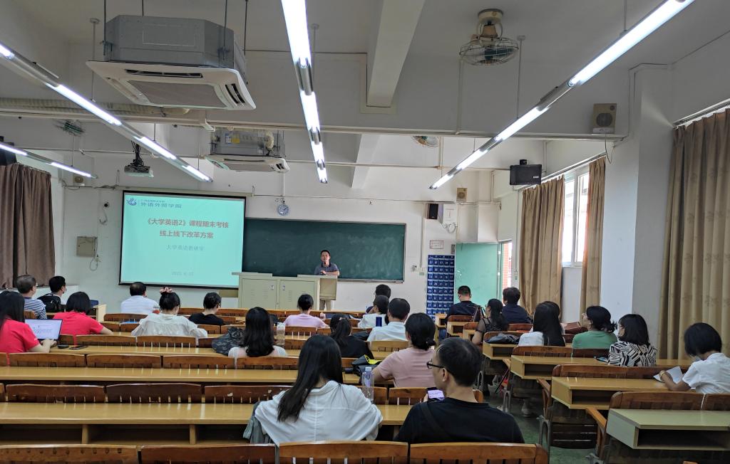 6月18日下午2点,外语外贸学院大学英语教研室在人文艺术楼625召开课程研讨会。学院副院长刘宁、李霜及大学英语课程组的老师参加了此次会议。会议由大学英语教研室主任张大增主持。